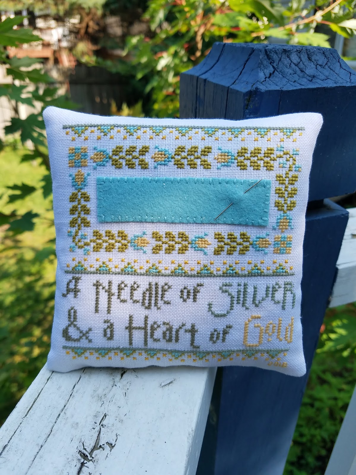 Stitched on linen and threads from kit.